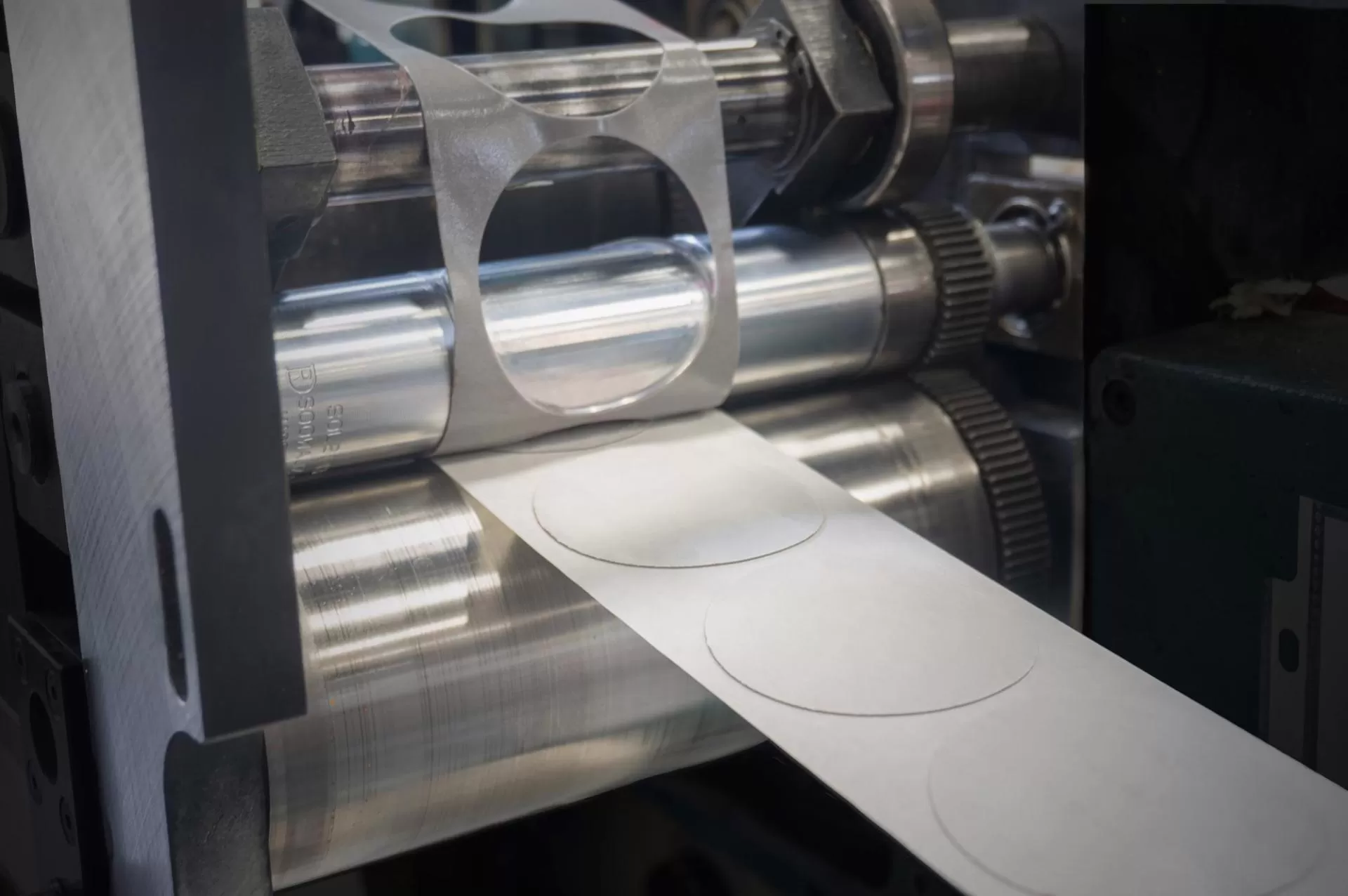 Rotary Die-Cutting: In this method, cylindrical dies rotate against the material, cutting as it moves through the machine. Rotary die-cutting is ideal for high-speed, high-volume production, especially with flexible materials like labels, films, and foils.